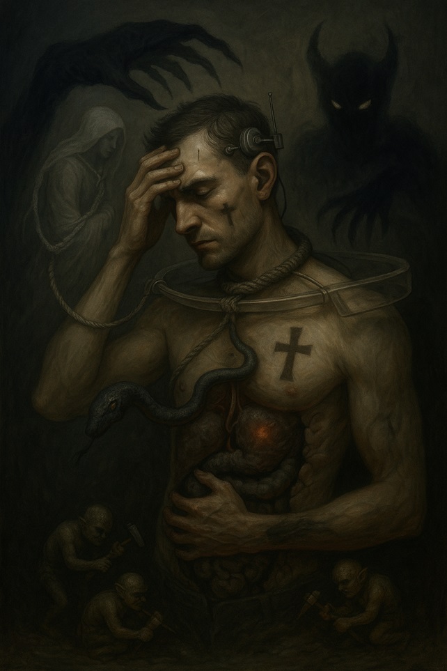 Er trifft ungünstige Entscheidungen und reagiert emotional instabil, fern seiner inneren Balance. Sein Verhalten folgt selbstzerstörerischen Mustern, die ihn immer wieder daran hindern, dauerhaftes Glück und Erfüllung zu erleben – ohne zu erkennen, dass fremde Programme, Impulse oder Wesenheiten mitwirken.