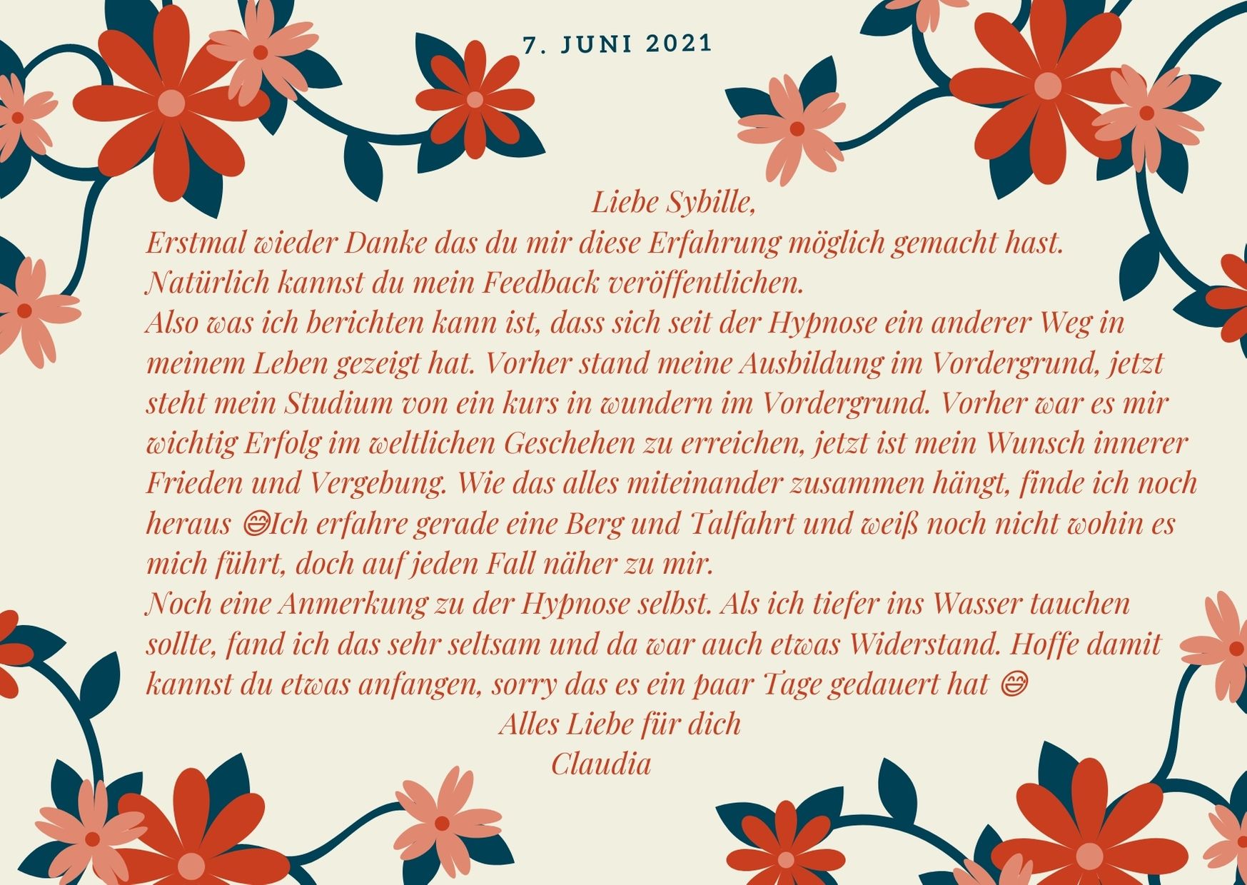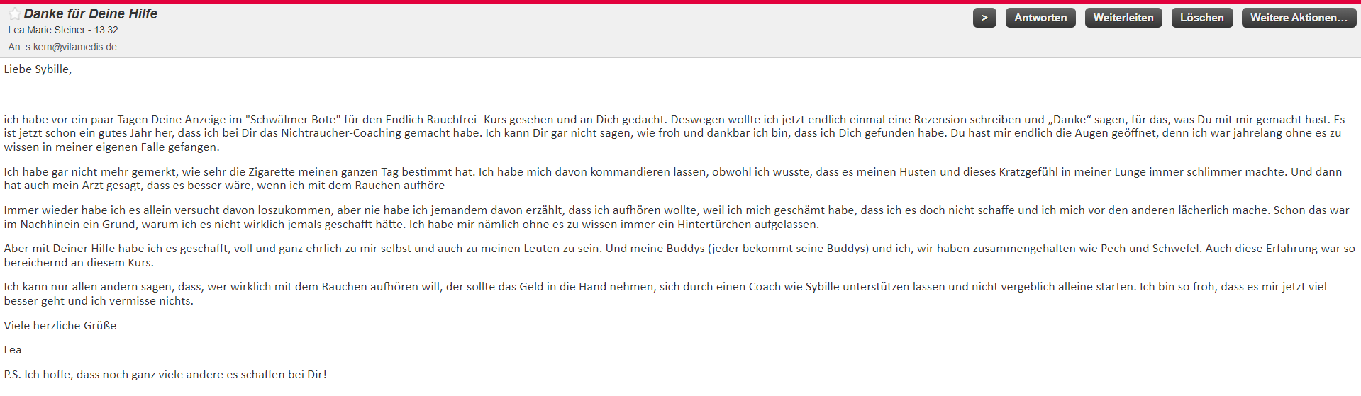 Frau S. aus Borken, „Endlich Rauchfrei“-Kurs, September 2023, zum Lesen auf das Bild klicken